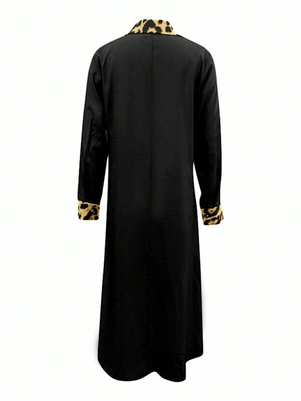 SHEIN LUNE 1pc Women's Random Leopard Print Button Front Long Sleeve Dress Maxi Women Outfit